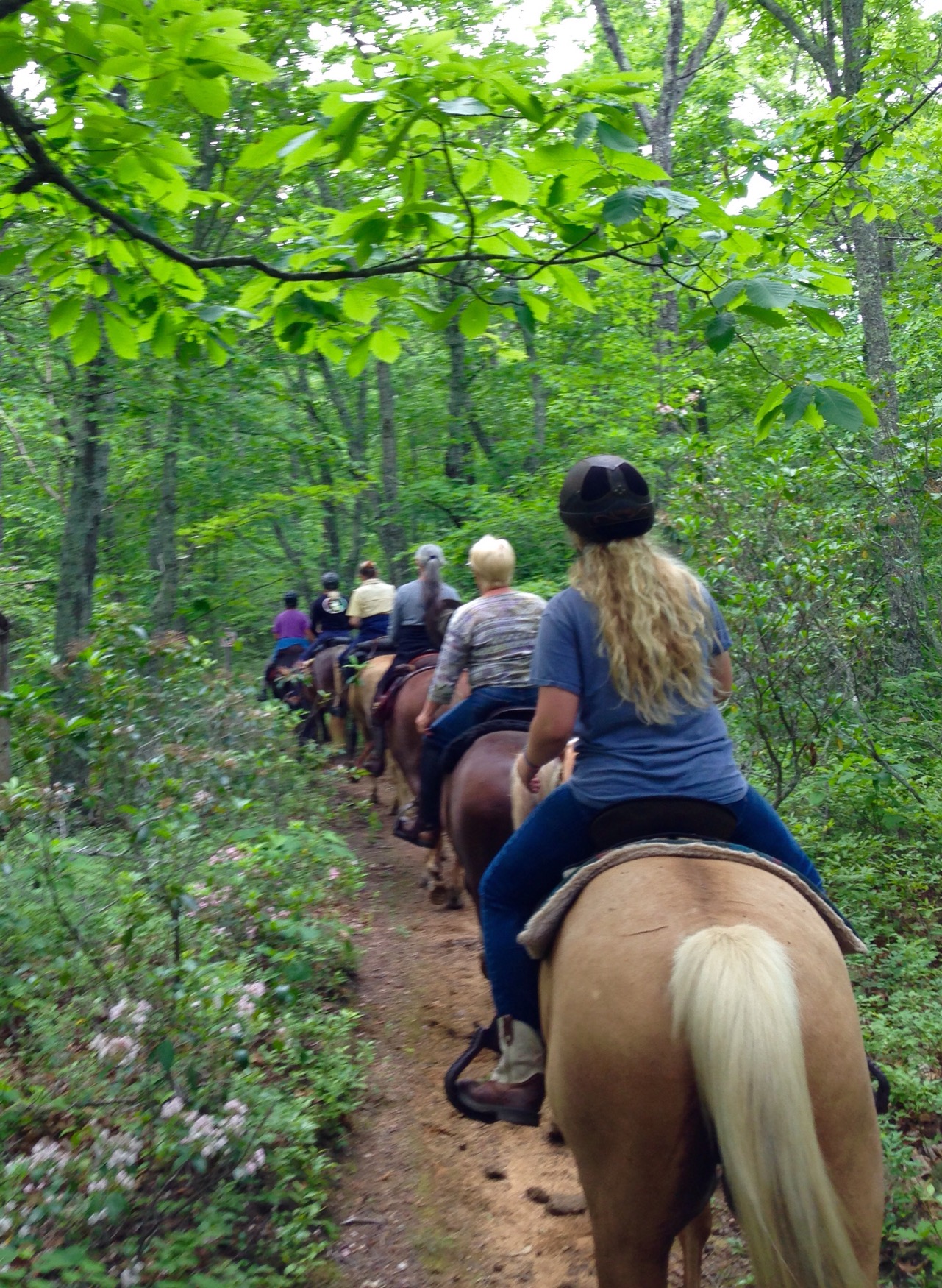 Douthat is a local state park with fantastic horse camping sites. It’s still in the county, barely an hour drive door to door, and has new covered stalls for the horses complete with buckets, water, and horse amenities like shovels and wheelbarrows and hay racks. The park is pretty although there are only about 6 miles of trails accessible to horses, but once you ride through into National Forest you can go just about anywhere if you’re looking for a longer ride. It offers lots of options and makes a great home-base if anyone is looking for good horse camping in our area.