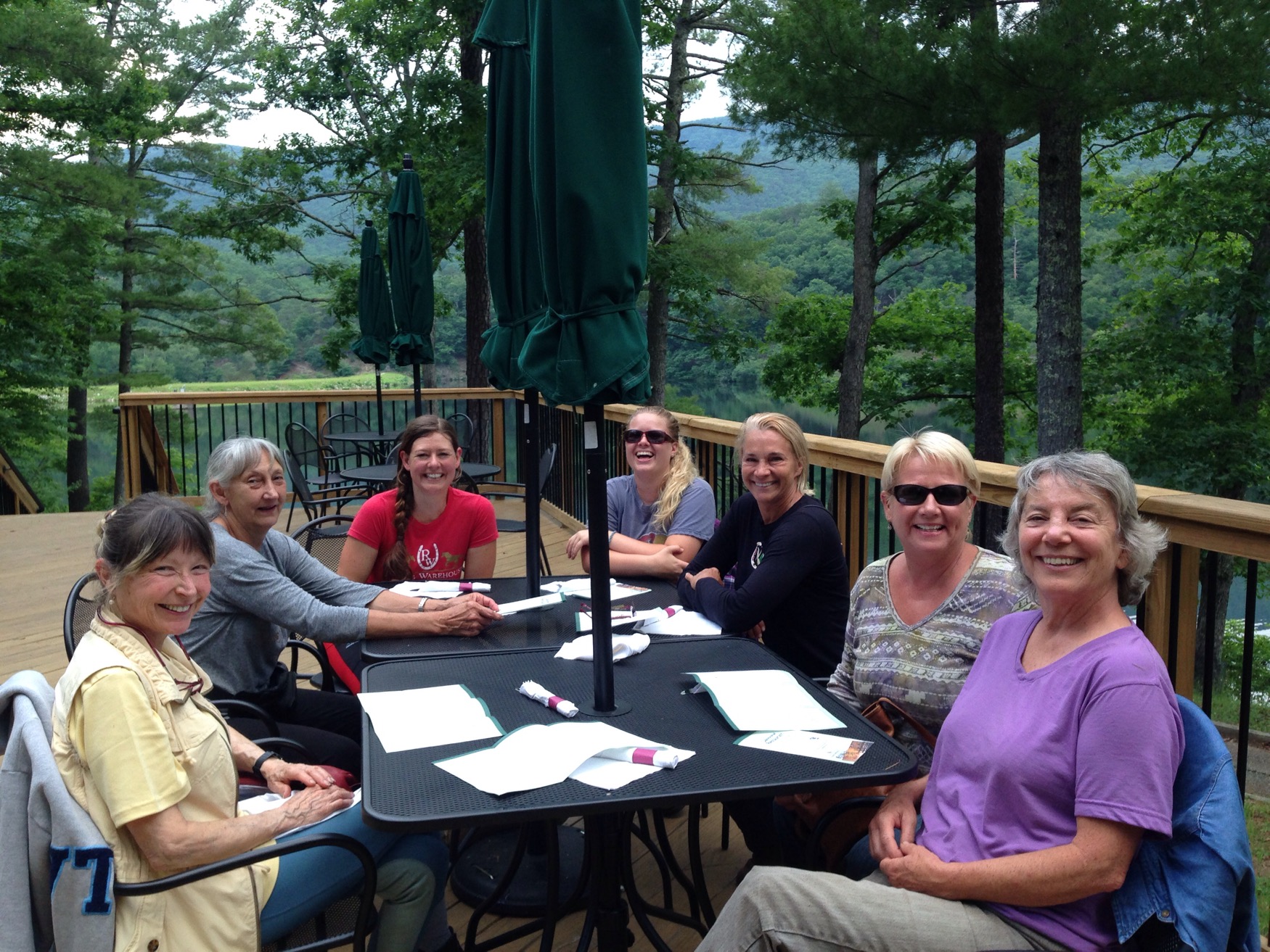 After drinks around camp we headed to the next reason Douthat is SO easy for us… the Lakeview Restaurant. The food is average, the wine is inexpensive, and the view is lovely. It’s a perfect way to end the day- no cooking and no camp dishes! Everyone can eat what they want, and the salad bar isn’t bad. The deck overlooks Douthat Lake and it was a beautiful night.