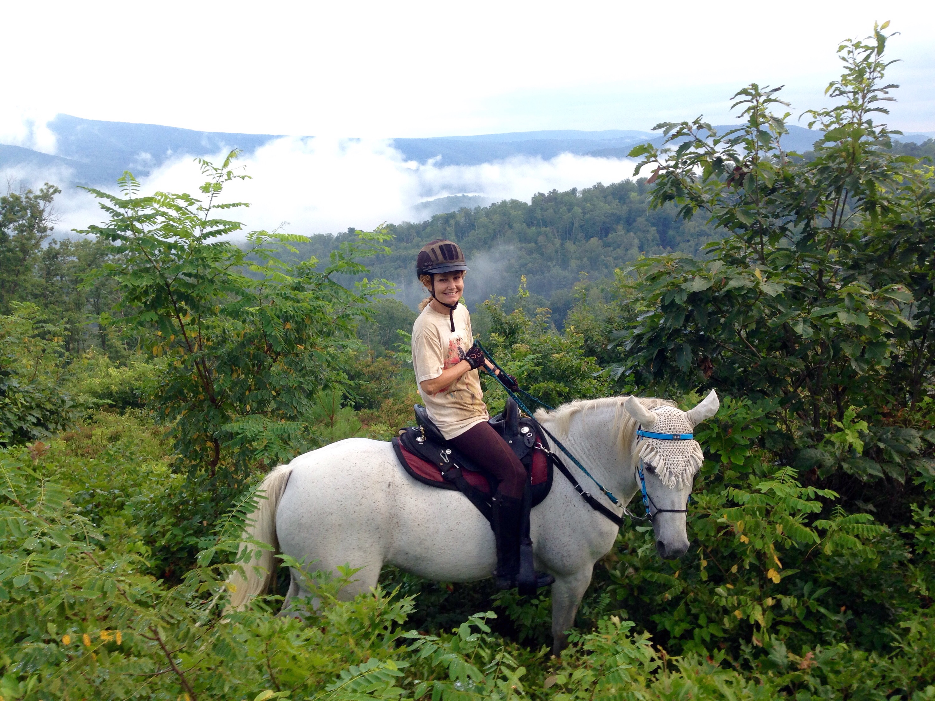 She arrived early evening and we headed to the barn after a heavy but short rain and took a misty evening ride. The fog sitting on the mountainsides were pretty and she got to know Faygo a bit.