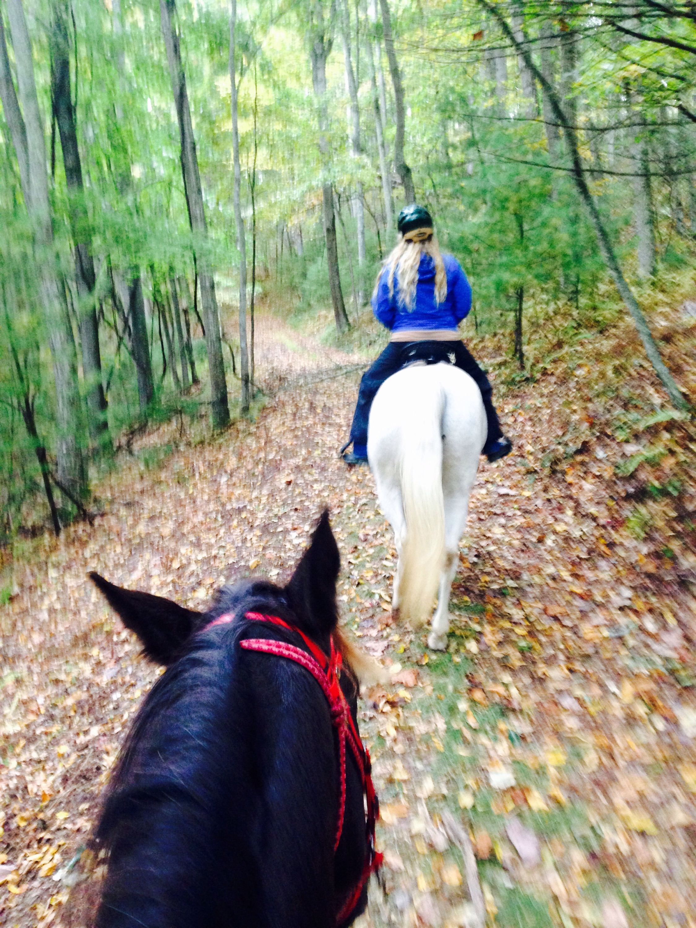 Similar ride on Saturday. Both horses did a fun 10 mile ride and we had a blast trotting and cantering through some pretty woods in an overcast- but not rainy (until the end) afternoon.