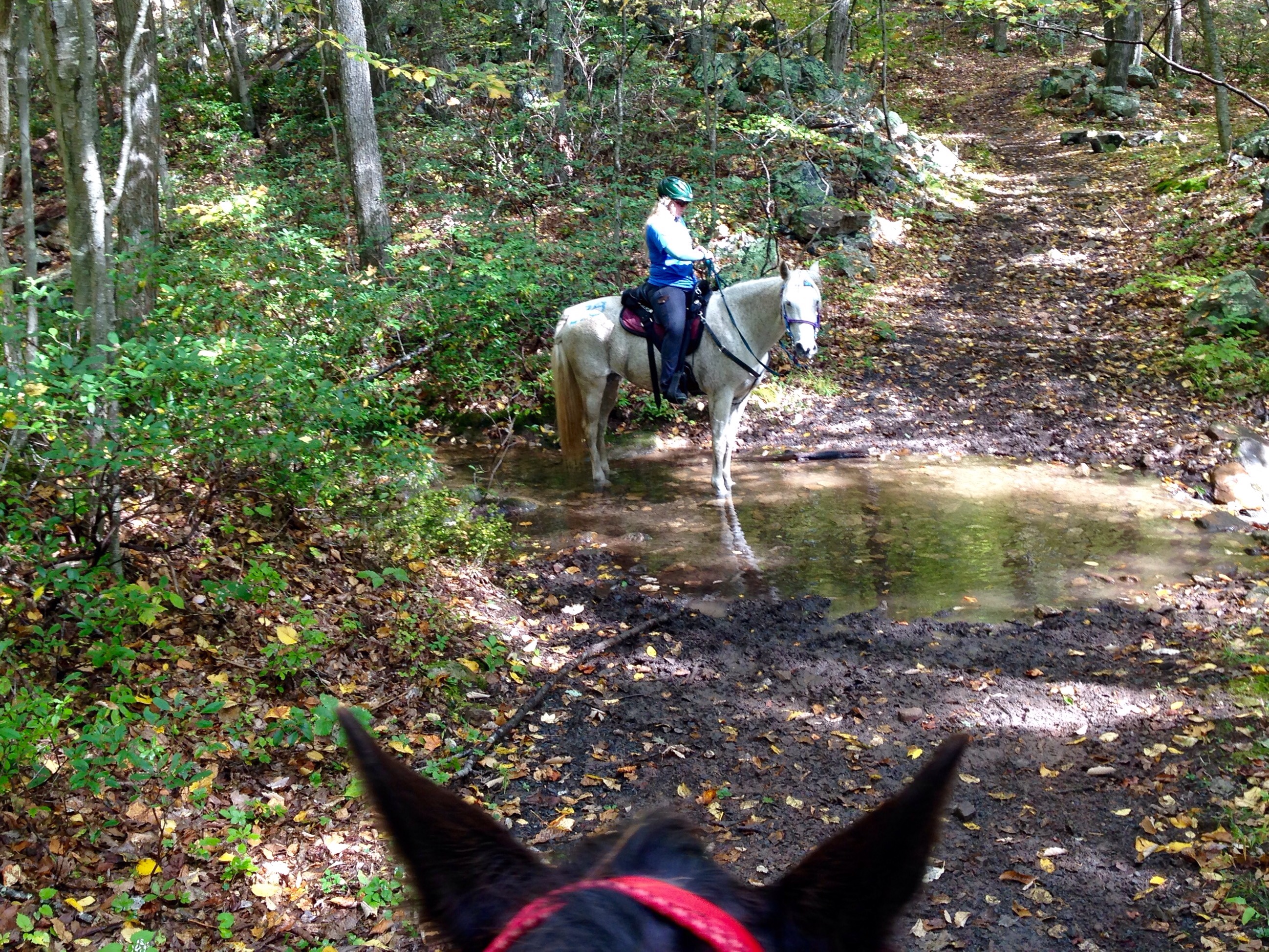 Not long into the ride I saw the sign for “ride photographer ahead- please spread out”. Funny thing was I was trying to focus on my horse who two rides ago did a dance when she noticed the camera and I didn’t even realize she was there until we’d almost passed her. No horse dancing this time- and makes me wonder if it was her or me in the first place. Becky as usual got a great shot of us! I love seeing the ride photos develop, I am almost starting to look like a “real” rider.