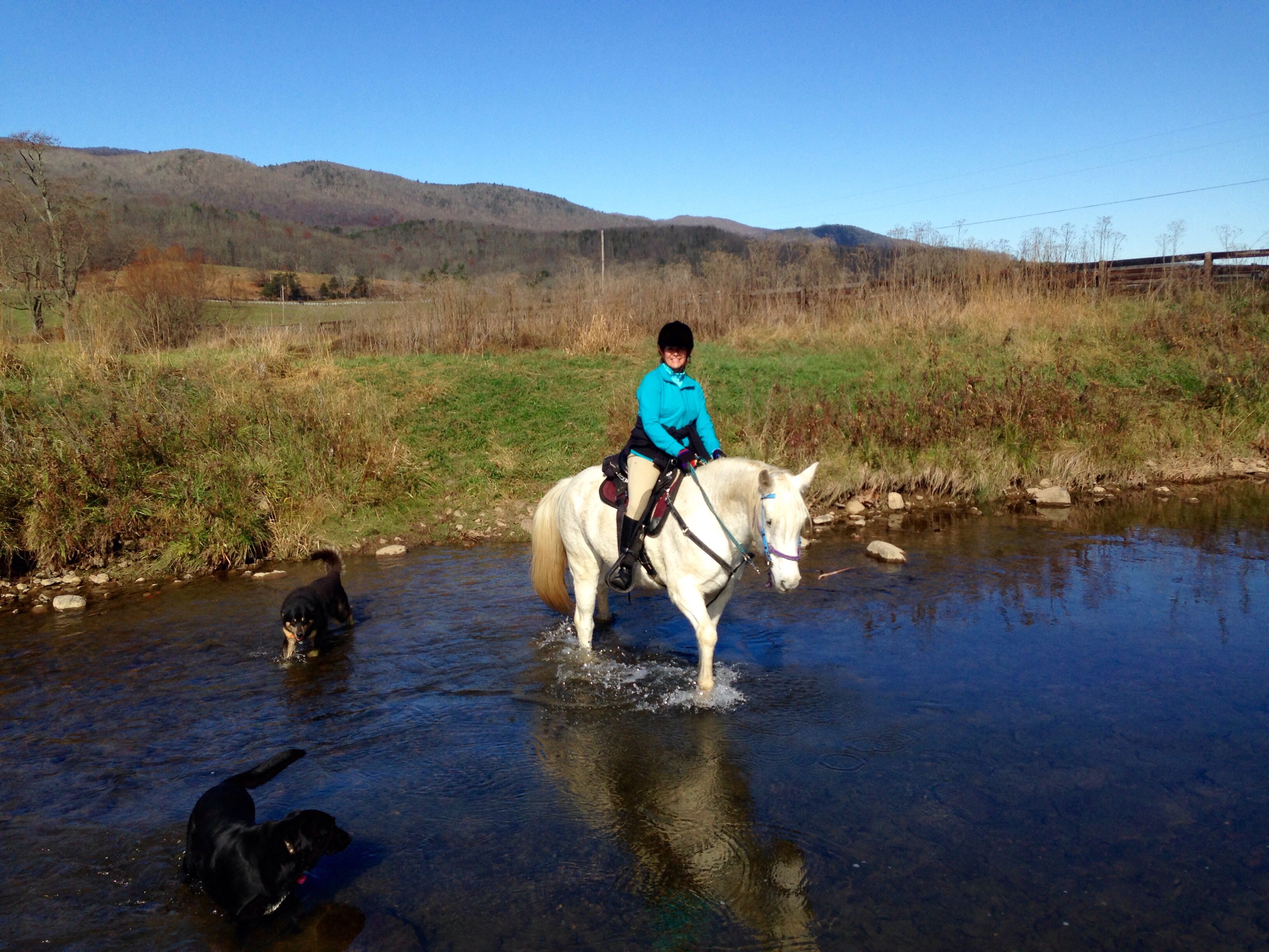 I had a visit yesterday from Susan who also works in my building at Washington & Lee (I teach violin and chamber music there). We had a chat on Wednesday that ended with us learning we both ride- she was intrigued about endurance riding (she hunts & does eventing and has never really gone on a trail ride in the mountains) so I invited her up Sunday. She is a really nice rider who enjoyed Faygo and what fun to introduce someone to the beauty of trail riding!