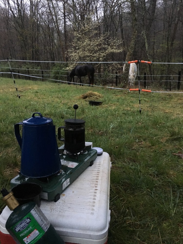 I threw on my muddy creek rain coat and got to work on coffee (first thing first).