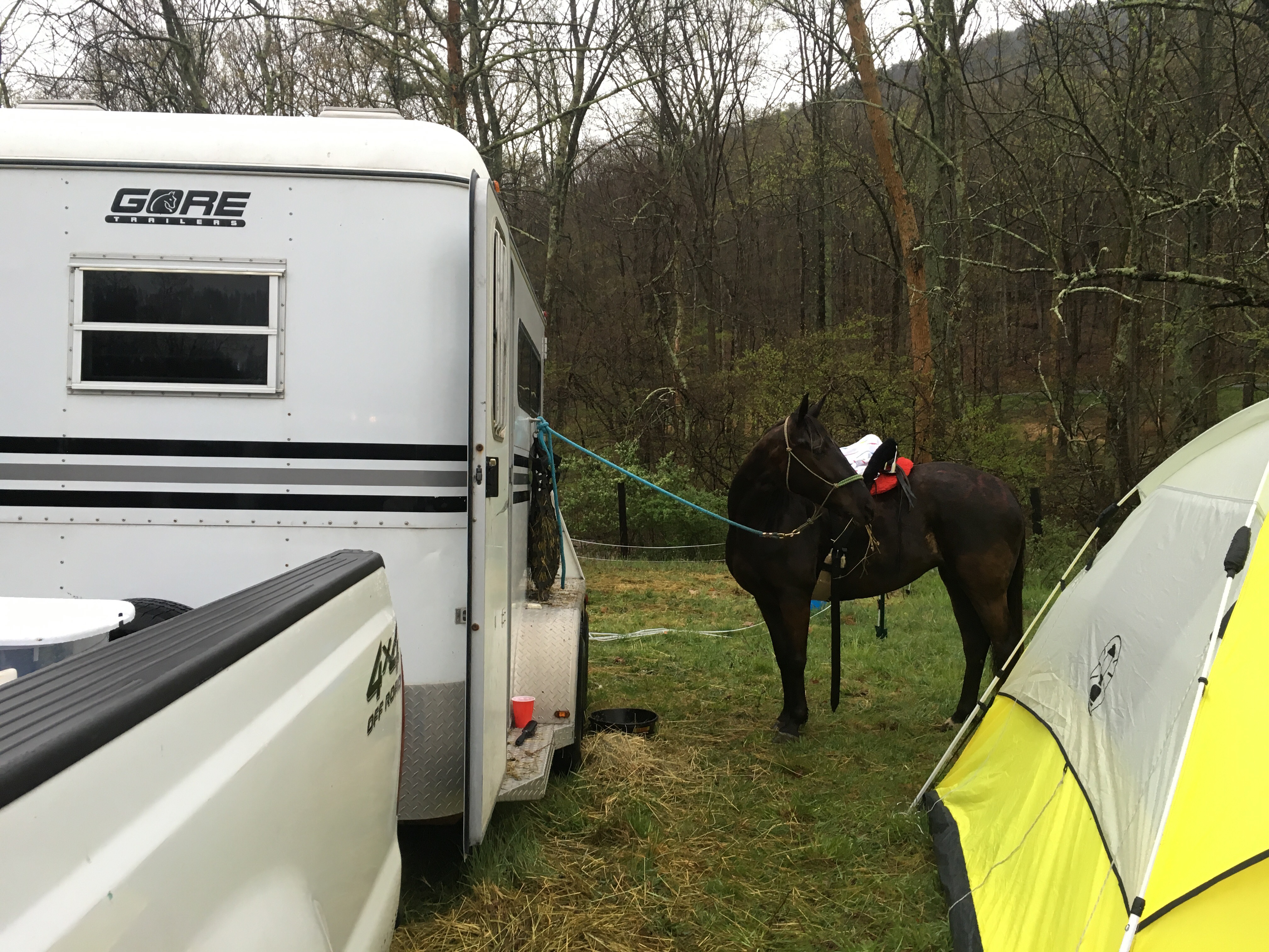 Right as we had to get serious about tacking the rain decreased to spittle. Horses were still wet, but at least our gear wasn’t.