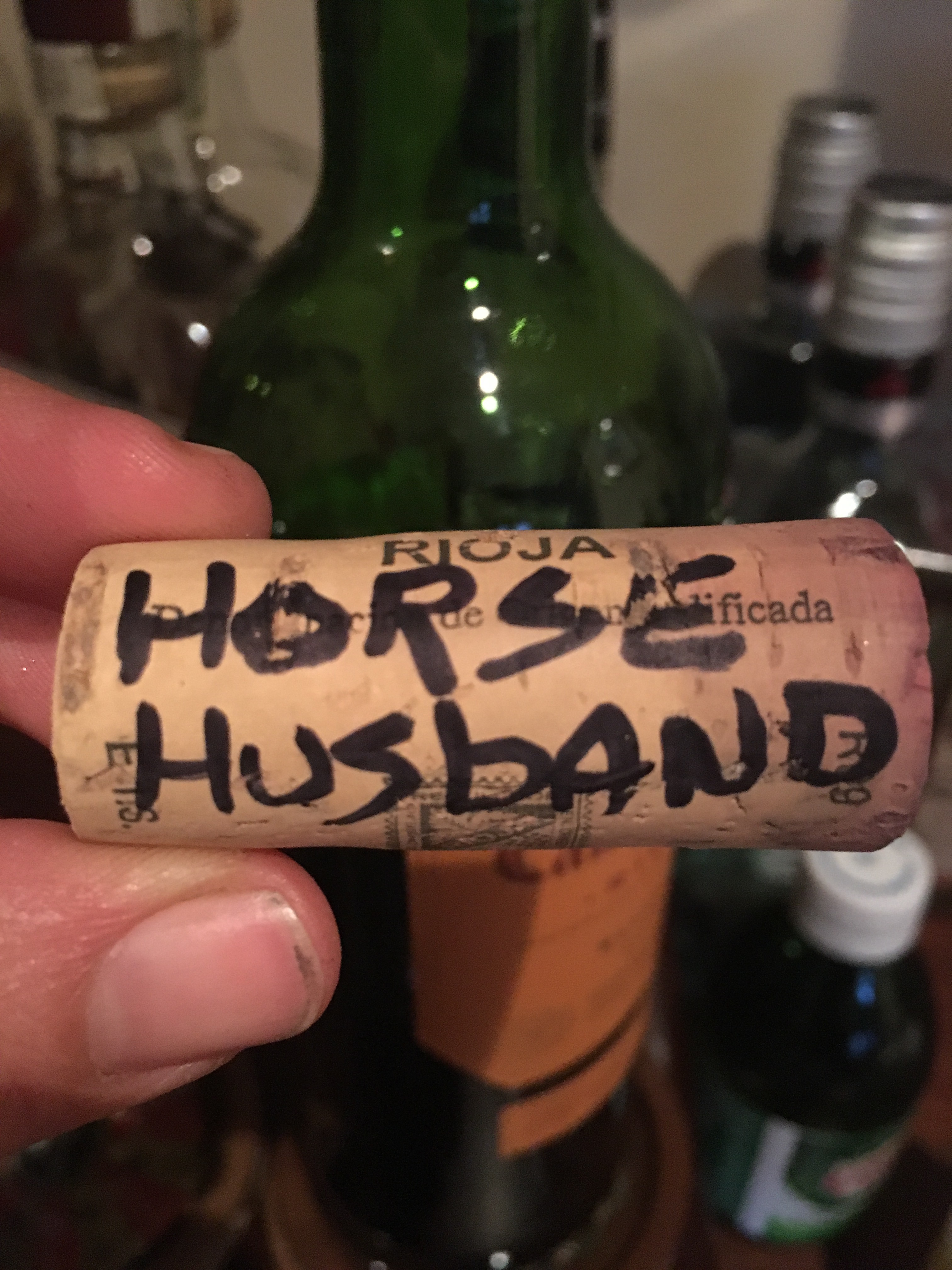 When I got home I found he had opened a bottle of wine I was curious to try – when I asked how it was he said it was good, and he even signed the cork (which he doesn’t do often) for our wall. I dug it out of the cup we keep them in before they are glued on the cork wall… This is what I found: