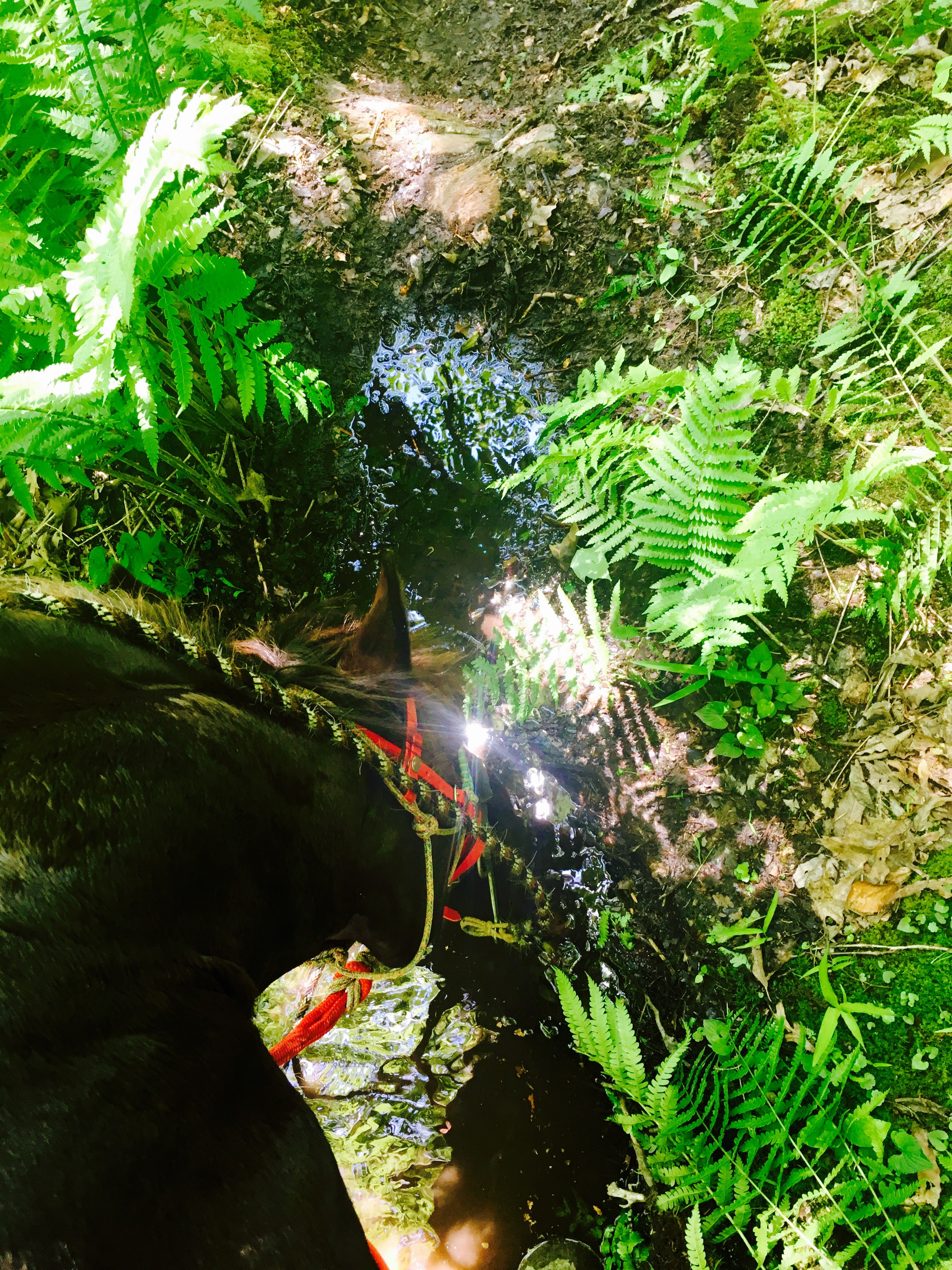 Then we come to a gorgeous fern valley with a little spring where she finally drinks for the first time today. It’s like Jurassic park but without dinosaurs. Serene.