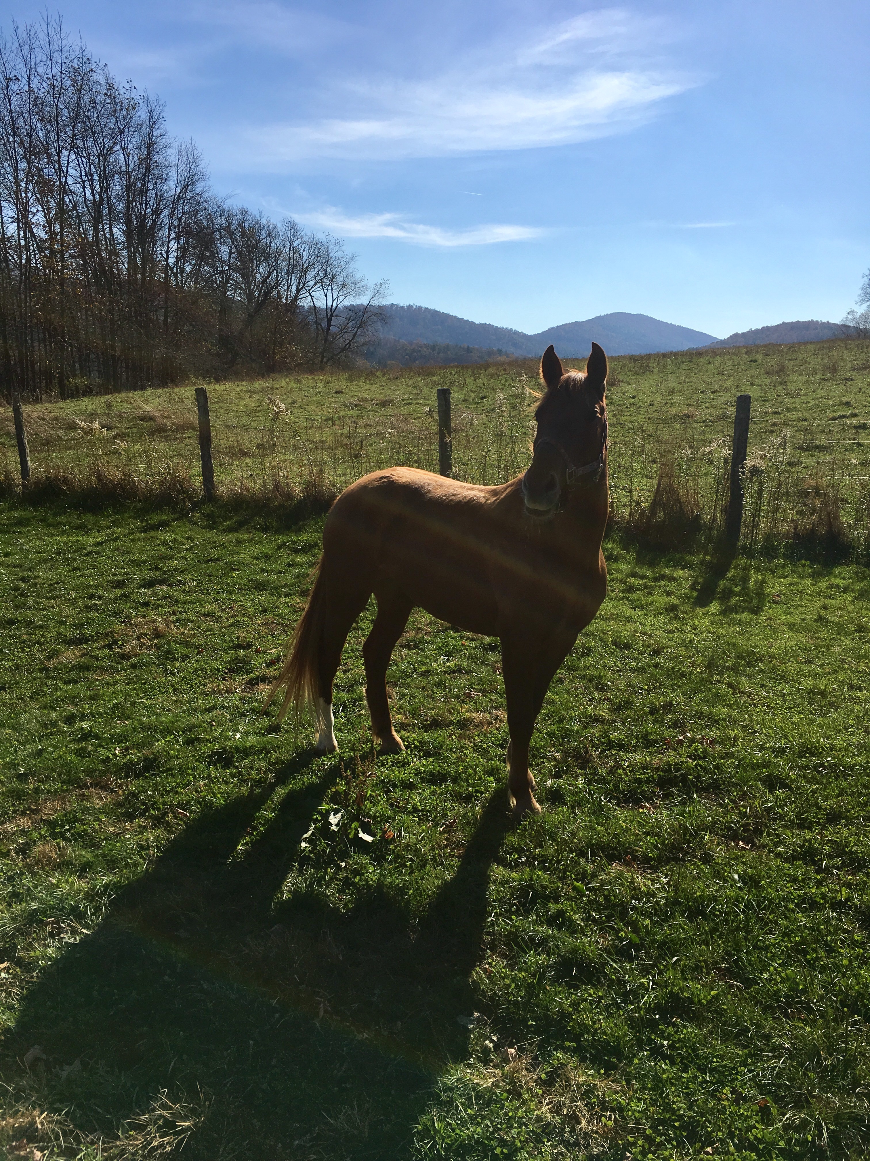 She is now living alone in a small field while we get to know her. She will be a slow project but eventually she’ll be on the training arm of team green with Susan and hopefully a safe horse in time other experienced riders could ride as well.