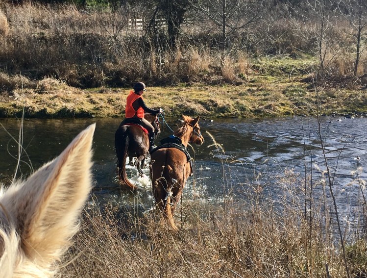 On some positive notes: I pulled out the heart rate monitor again and she’s still got fantastic recovery. I cantered her up a long hill around mile 12 and got her heart rate up to 189bpm at the top where we stop for the pipe gate (I was aiming for 200) by the time I pulled out my phone and got camera mode up she was down to 172 then in about 20 seconds down in the 70s.