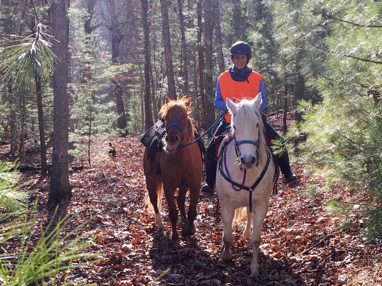 She was perfect! We left lame Khaleesi in an outdoor stall and took Faygo and Heart for a few miles loop in the woods. It was a nice first ride and Heart walked calmly from start to finish.