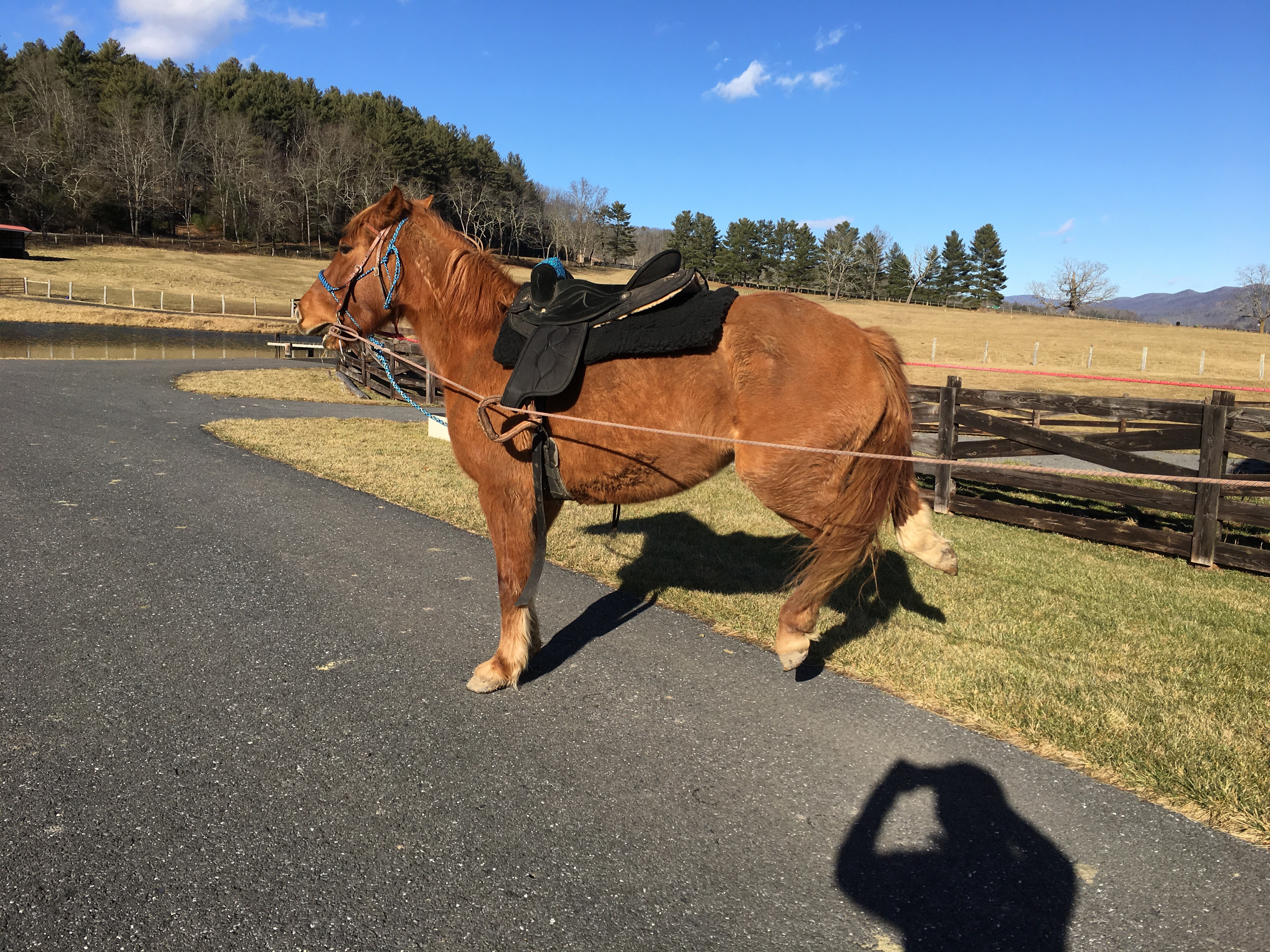She was perfect! We left lame Khaleesi in an outdoor stall and took Faygo and Heart for a few miles loop in the woods. It was a nice first ride and Heart walked calmly from start to finish.