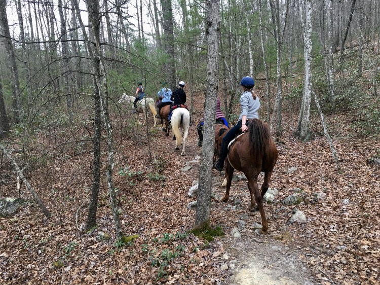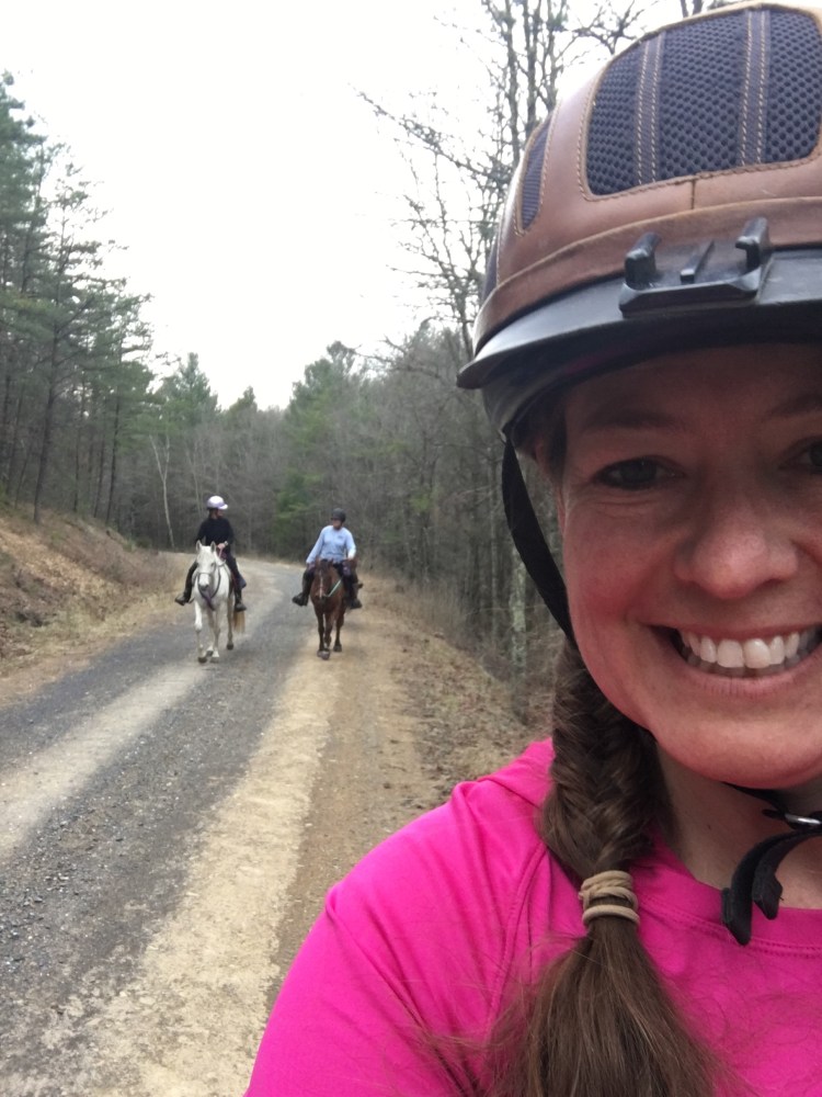 The real test was the logging road. It’s 2 miles of climb with great footing around the end of the ride. There were only two of us training for the March ride in the group (others had horses still not yet fit or coming out of big rides and were on easy ride/rest so not cantering) so we all decided that us two would separate for the hill to work on canter intervals and the rest would hold back then walk up the hill.