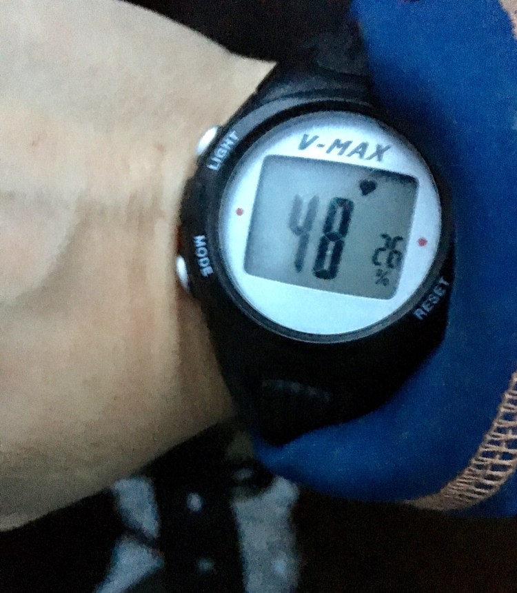 Just standing and some walking around up there waiting for the group we dropped to 64 bpm in less than 6 minutes.