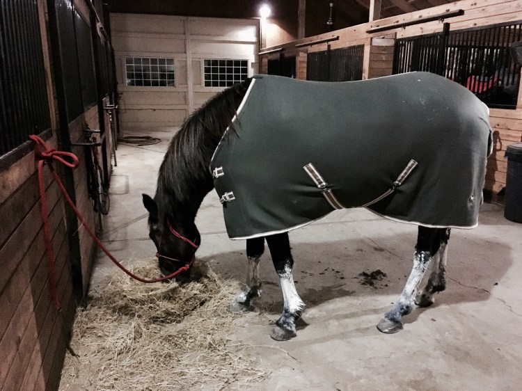 After the ride I rubbed a poltice on her legs because it couldn’t hurt- this was more distance and speed than we’d done in a while. This was the kind of ride that could cause some fluid build up. Then I put her fleece sheet on because she was damp (though not nearly as sweaty as I’d have thought) and we had a long drive home and the temps were only going to drop.