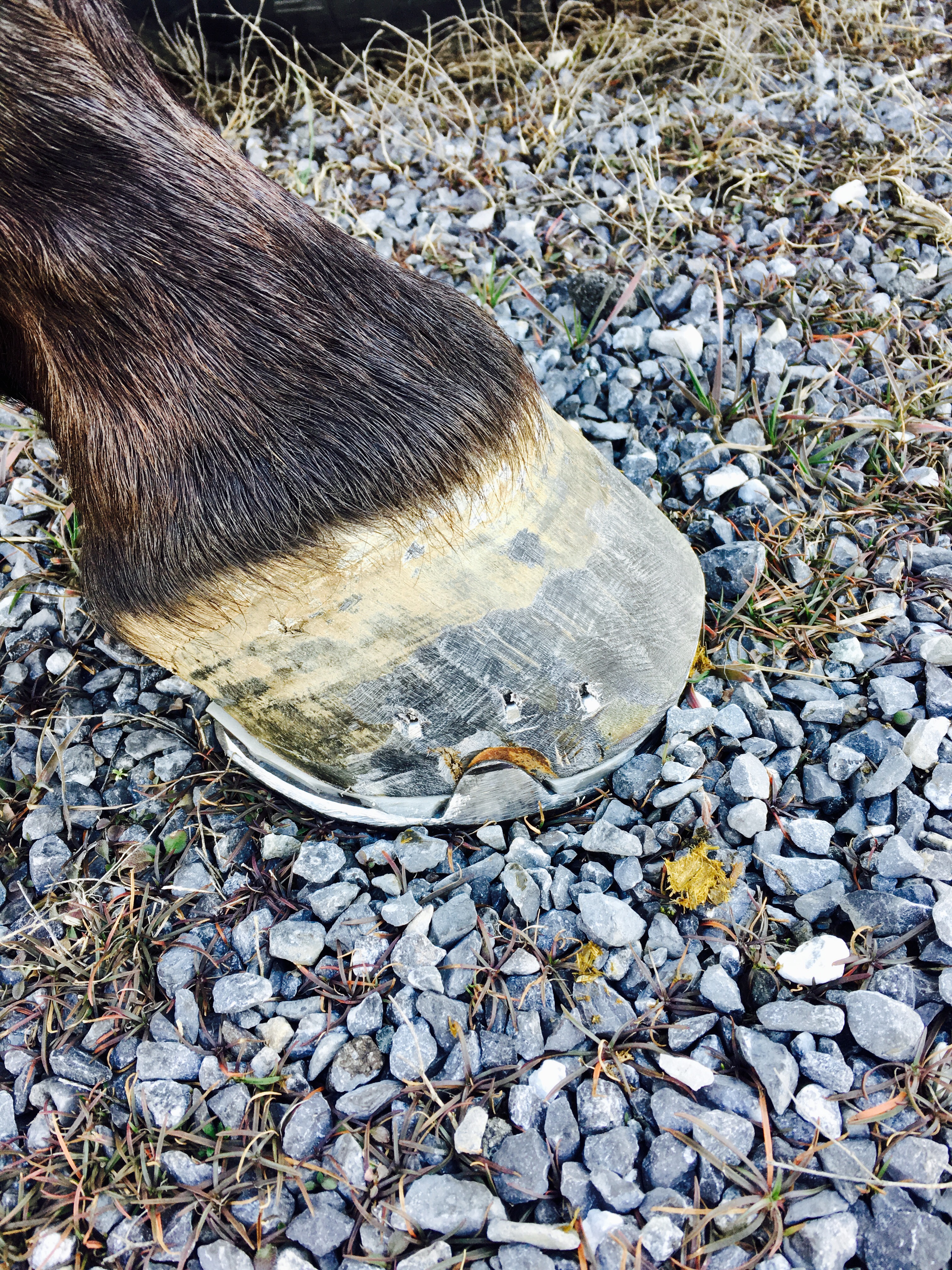 My vet and farrier got together, went over the X-rays and my horse’s history and needs and we all agreed the best way forward is to be in metal shoes and pads for the foreseeable future. This will make her as comfortable as possible 100% of the time to give her a chance to grow some hoof in a better direction. Over time… at least a year… could be longer.