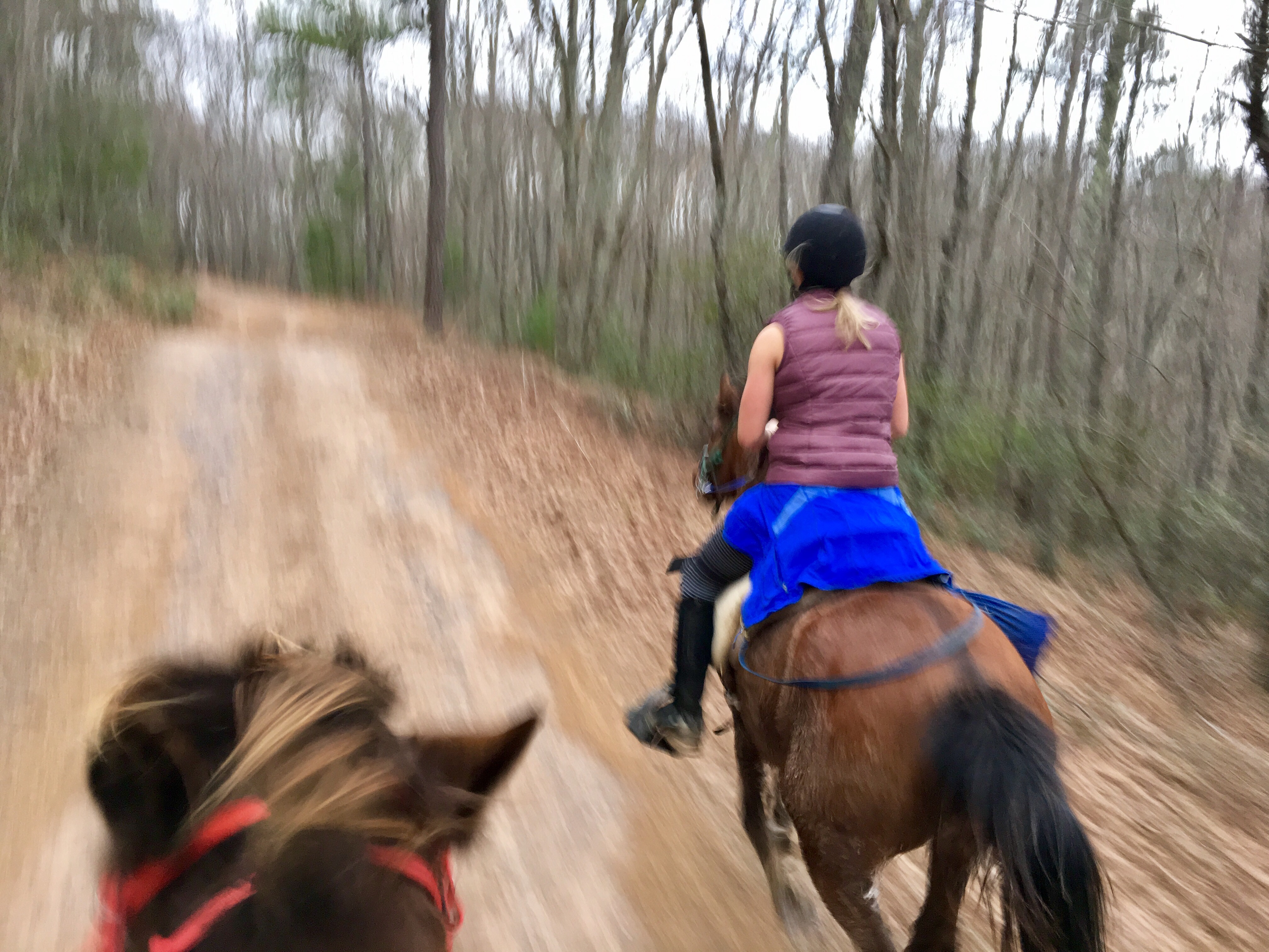 I assured her she would when mine started and true enough. I knew Khaleesi was more than happy to canter off and run on ahead. And that little mare picked up and ran with us without hesitation.