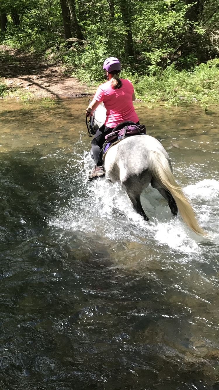 A lovely 15.5 miles in just over 3 hours. We allowed more dilly-dallying than we would during an event, more stopping to grab a bite, and a few moments of checking trails, GPS mileage, river crossing pictures and meandering. But I’ve grown to accept that on my training rides and trust that event day the girl knows the difference and gets to work. Every time.