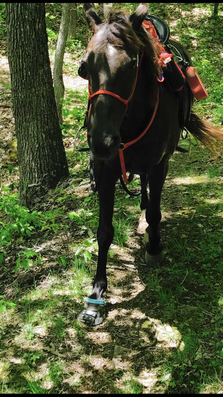 K may pick up her trot to ‘race day’ speed and that may work for Frills – but one thing is sure, I know better than to push her faster through the rocks than she can manage without hurting herself and I am well aware that could just be slower than others with more adept footed horses without hoof rebuilding, concussion damage and past lameness issues are willing to move.