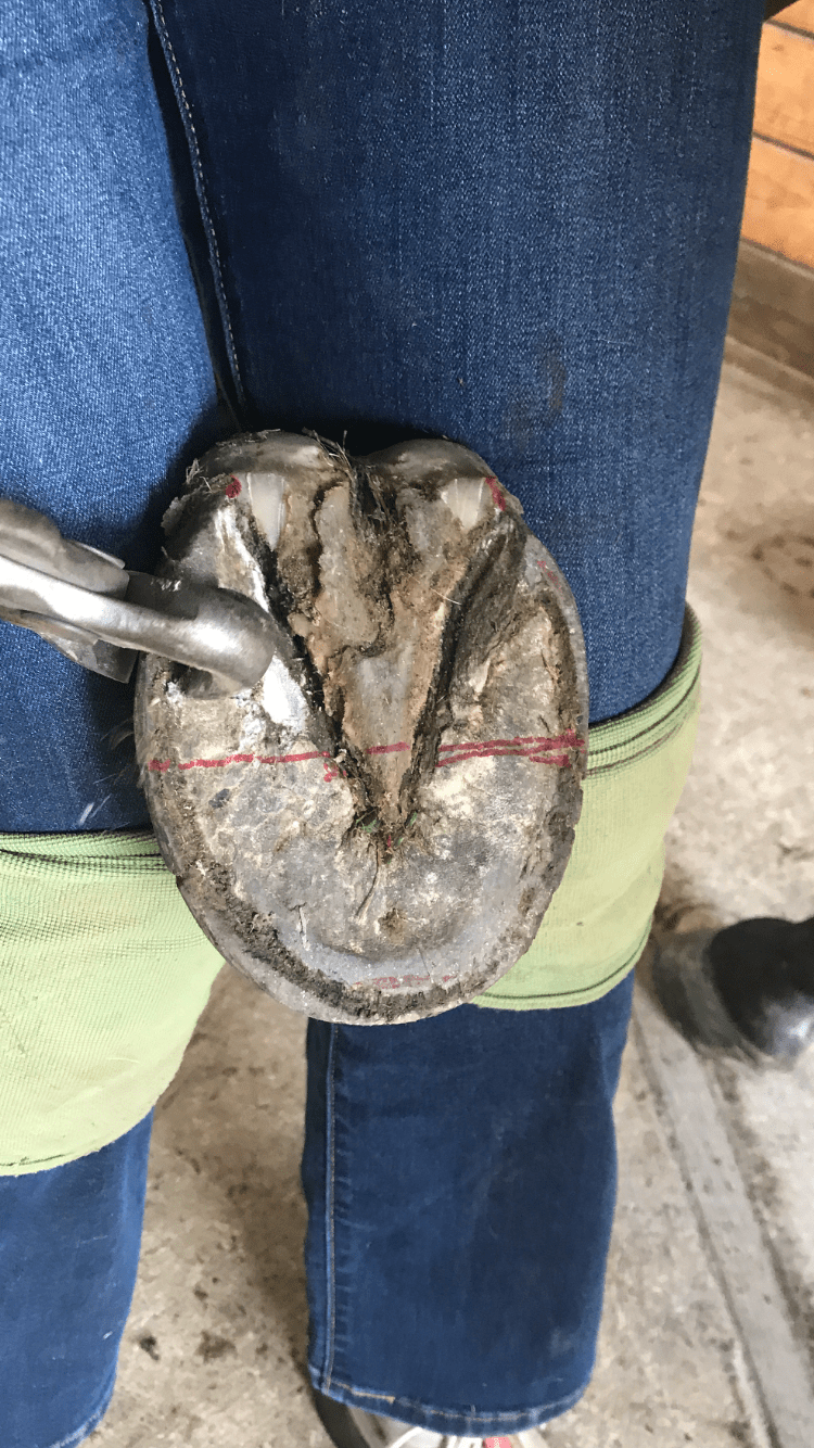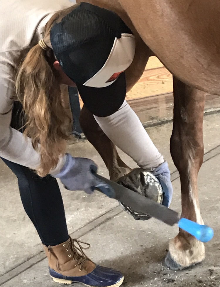 She thought the shape of her hoof was pretty good especially when trimmed to balance where the widest part of the hoof falls- and her soles were not too flat either. Khaleesi has decent concavity as well. She cleaned out only what was dead taking no live sole, and did some minor sculpting that would distribute the pressure on the parts that are best suited to share the weight load.