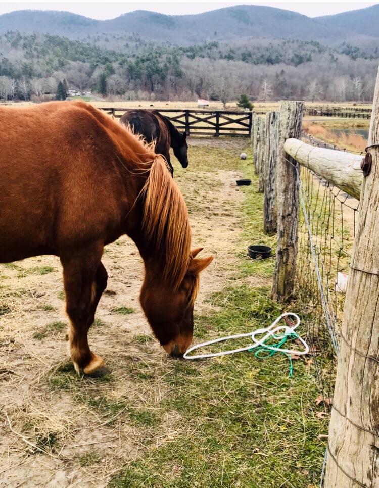 She walked away but not so far. She took a couple steps along the fence and began pulling up a piece of bailing twine I’d hung on the fence with her teeth.