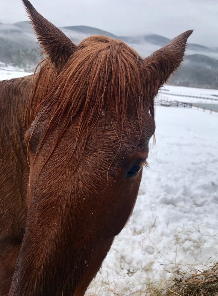 Yesterday I went to feed and check on the mares in the rain and as the mustang was politely following me to her feed dish I heard myself say to her: