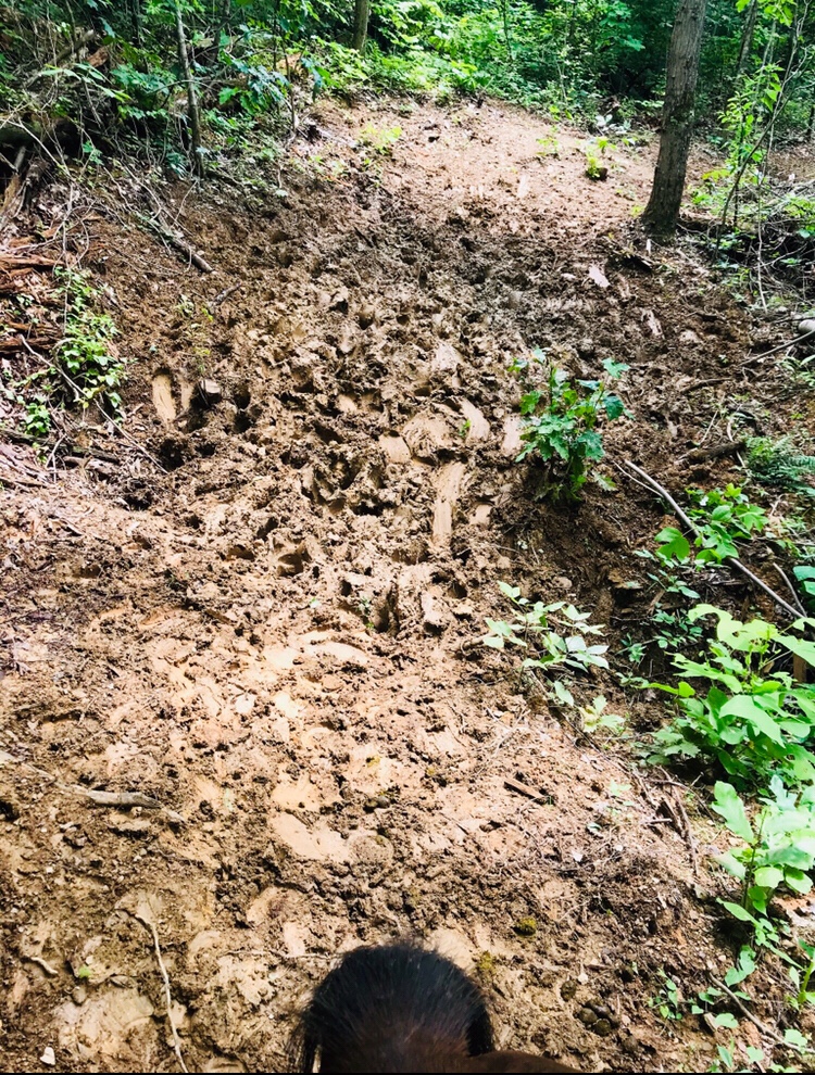 At one point I put on her front boots as we were high enough that the trail wasn’t mucky. That helped pick up some more speed through hard pack and light rocks- until the mire of death appeared.