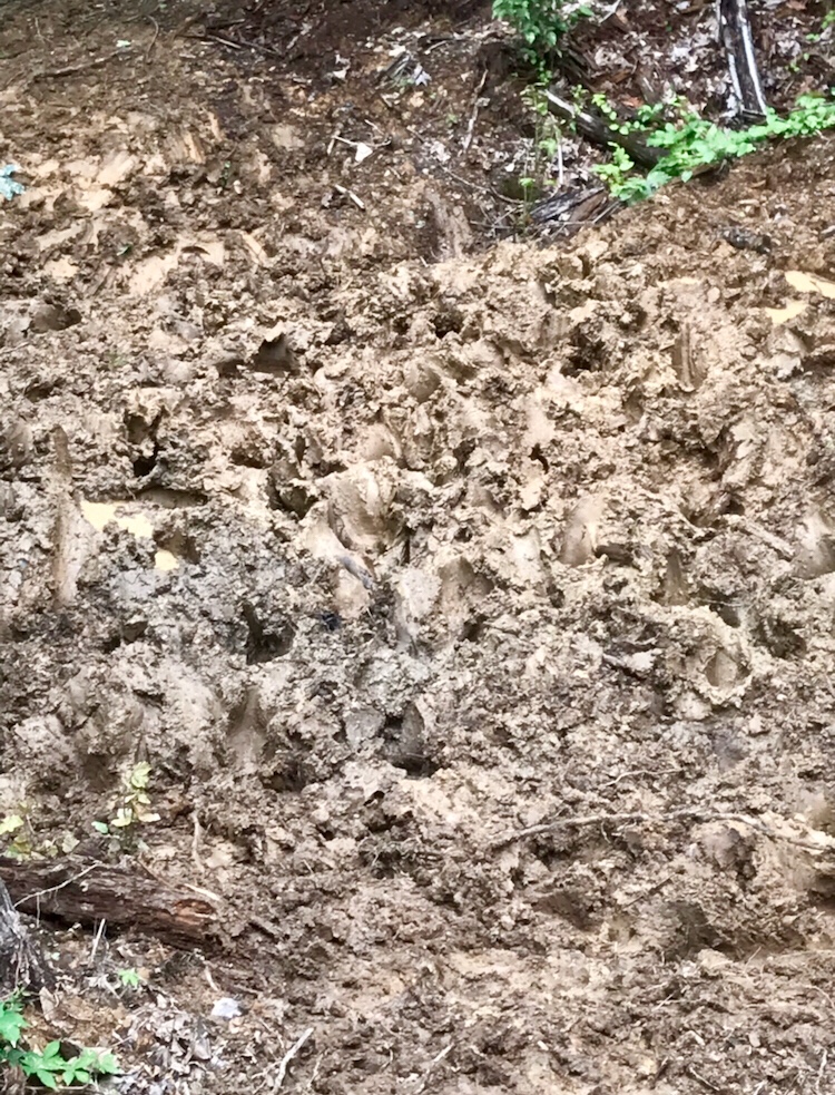We both stopped and I looked in front of me at a mud suck that had treacherous downs on either side and a drop off and it went down into a ravine then had a climb out. The muck had leg imprints 6 inches or deeper from horses before us. Apparently others survived this sucking pit- if it weren’t for the tracks leading out the other side I may have wondered if they’d been completely sucked under into the abyss.