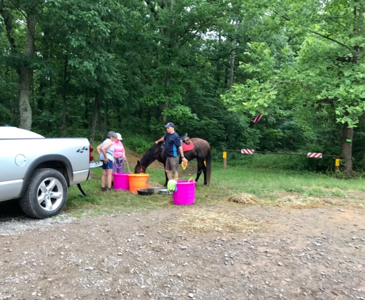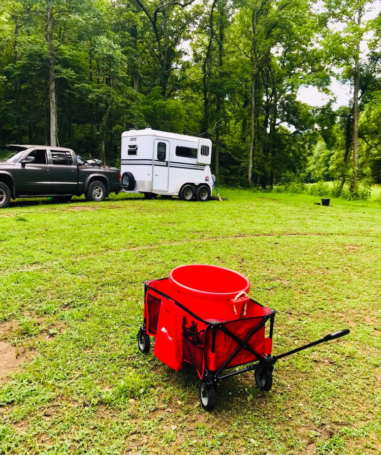 Thank the good lord for the little red wagon. He provided it just in time because the water hose was all the way at the vet check and it would have been brutal to hand haul buckets from there!