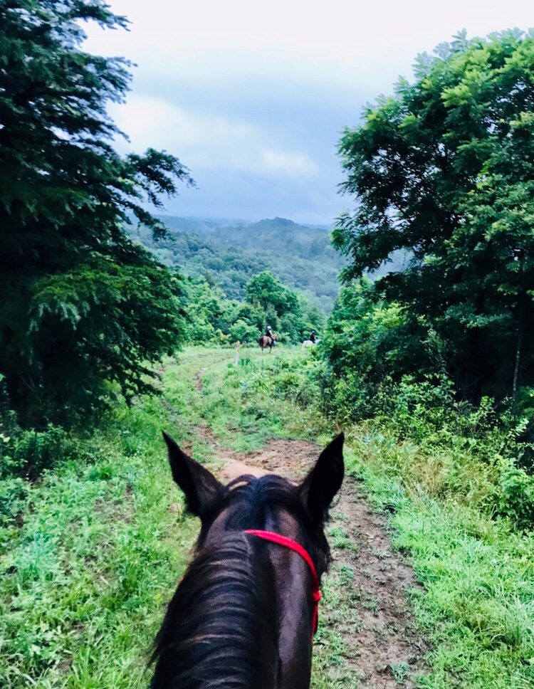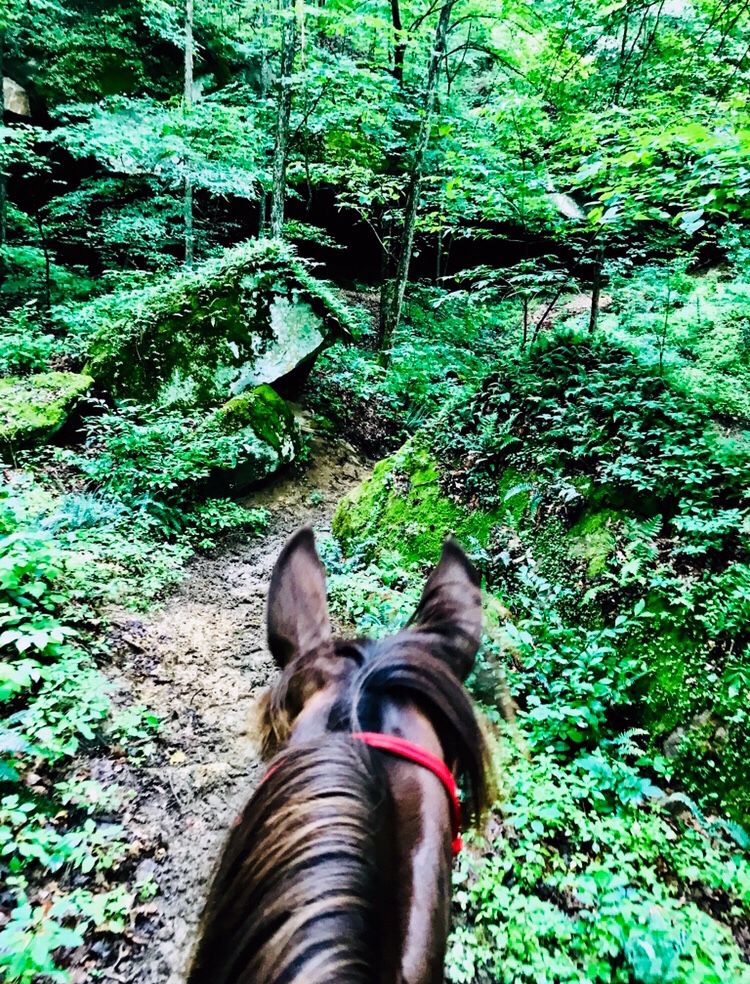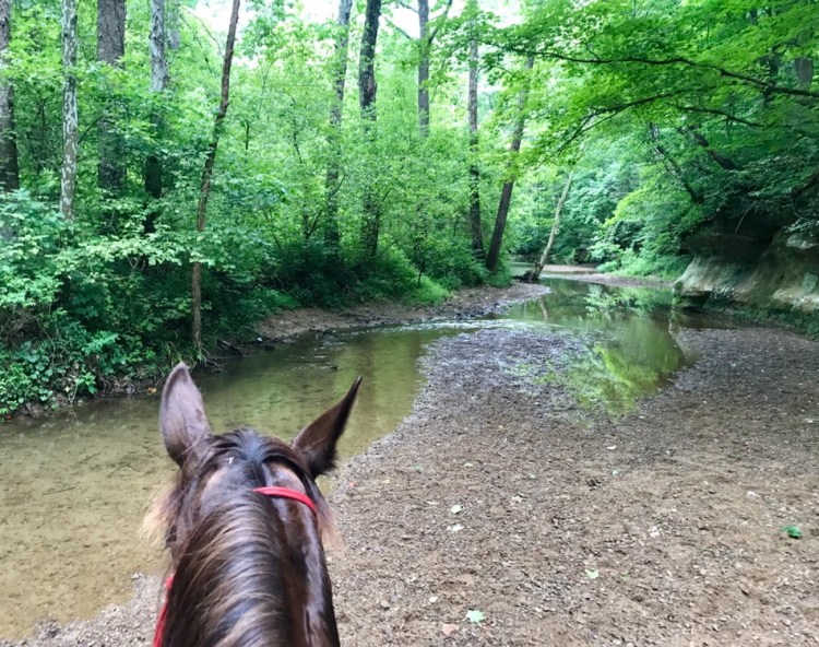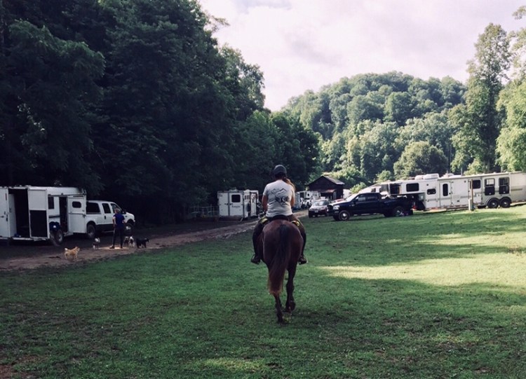 Things began to fall in line. Elkins Creek Horse Camp is lovely- complete with a small tack shop, great facilities including cute showers. [I highly recommend it as a camping/riding destination- the owners were very hospitable and the trails were lovely just don’t go in monsoon season!] A nice group area where we had dinner and a concise ride meeting with clear explanation of the trails- then to bed in the trailer with two hammocks to watch the lightning bugs light up the field across the stream out the back of the trailer. And my favorite thing of all- to listen to Khaleesi eat and drink all night long. Good girl.