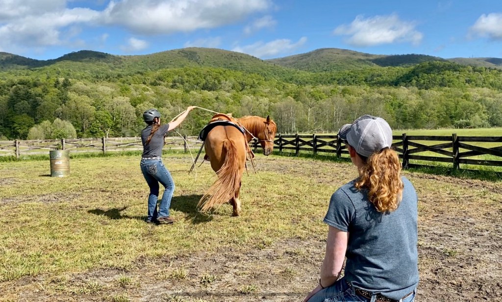 As Emily helped Wyoming and me find the holes in her early education, we prodded deeper and found situations the mare felt claustrophobic — that is my homework for the next couple months. Pressure and feel are still worrisome for her and the signal based system I had been working with is not bad, but for her left a hole of learning to move on a feel. Learning to give to pressure. This isn’t a new concept to me and I can clearly see where the gaps are now that we’ve pushed into some of them.