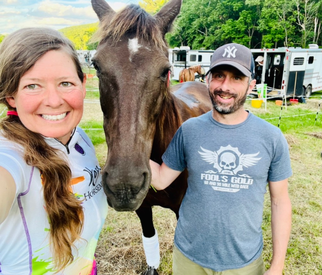 Then we navigated the ridge with all the rocks at a moderate unimpressive speed. She gets totally annoyed at the bouldering and it puts her in a foul mood. But she kept going. At some point a small family and the drag rider caught us (oh no, the drag rider… this is really going poorly for us today!) but actually it was a massive blessing because the drag rider had my rider card which had fallen out of my jersey pocket. (I had a dream a few weeks back that Dianne Connolly told me if I could find my rider card and brought it to them they’d be sure I got listed as completed since I had a great ride). Maybe being so slow on that loop that we connected with the drag rider was a secret ingredient to us finishing this year.