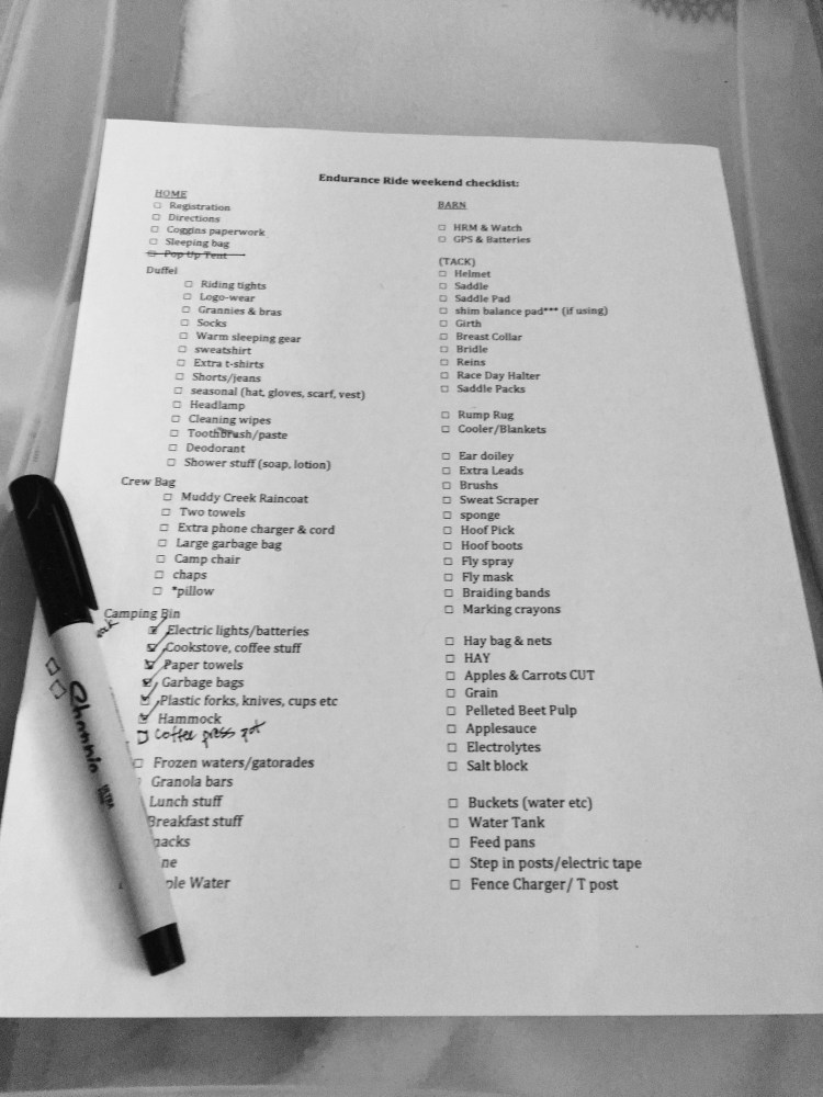 Tacked up by 6:30am… that’s the goal. Ride start at 7.
