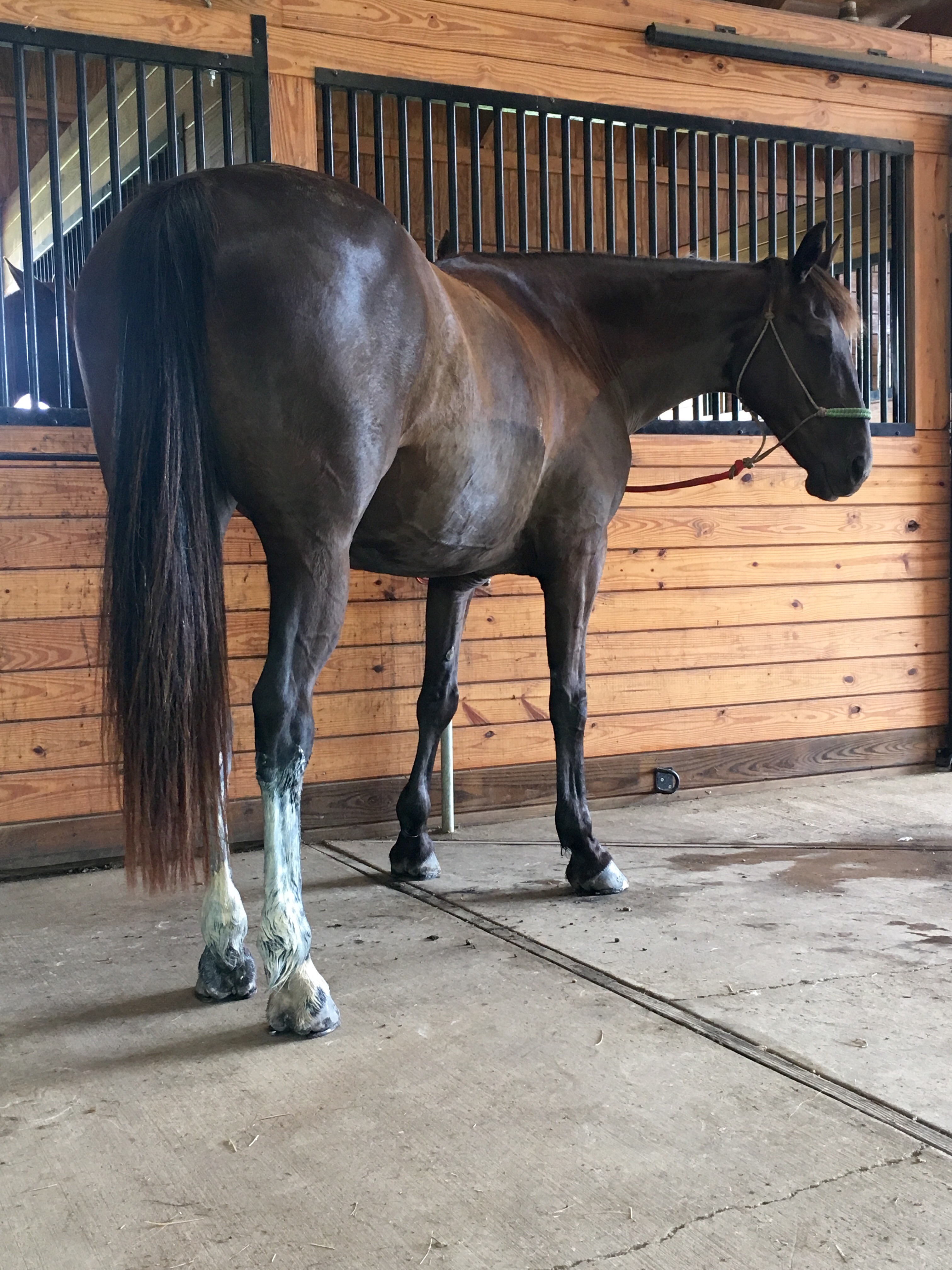 Twelve days after the OD 50 and Khaleesi’s rear joints are almost back to no fluid at all. The first time they filled last fall it took a few weeks for them to go down so this is good improvement. I hope building her fitness, continuing to work and rest her structure, ligaments and joints as well as wrapping and running her legs have all helped.