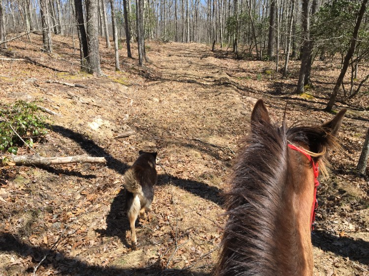 Susan and I were riding on a pretty early spring day on hunting roads that had great footing with the intent of making good time as safely possible to practice picking up speed and increase their cardio workout.