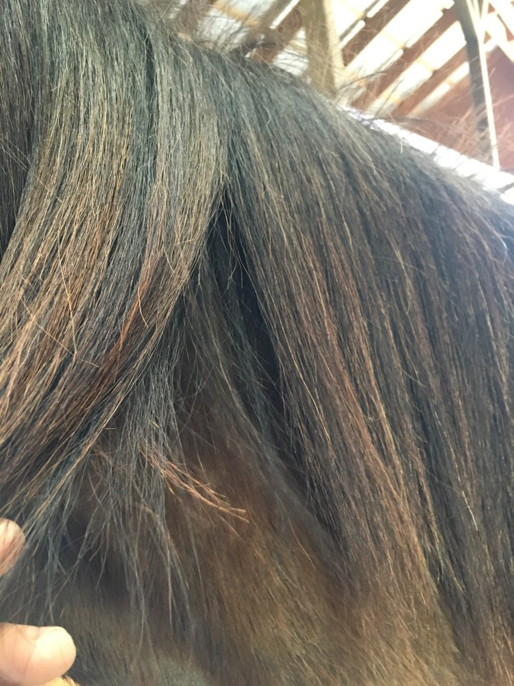 I am surprised to say I believe the worming has improved her mane quality already. Ever since she came to me her mane and tail were somewhat brittle- like she’d had too many colors or perms and her hair was a little fried. I brushed it out yesterday and it seemed much softer already than it’s ever been.