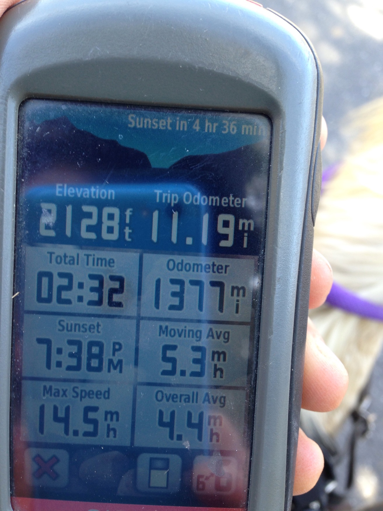 When I got home and checked the GPS I was a little off. The ride was about 11 miles, very similar to the ride we took last weekend! I was especially surprised since we did the ride in about 2.5 hours. Sorry dogs- I didn’t realize I was going to drag you 11 miles at a good moving speed. But they hung in there like the fantastic trail dogs they are!