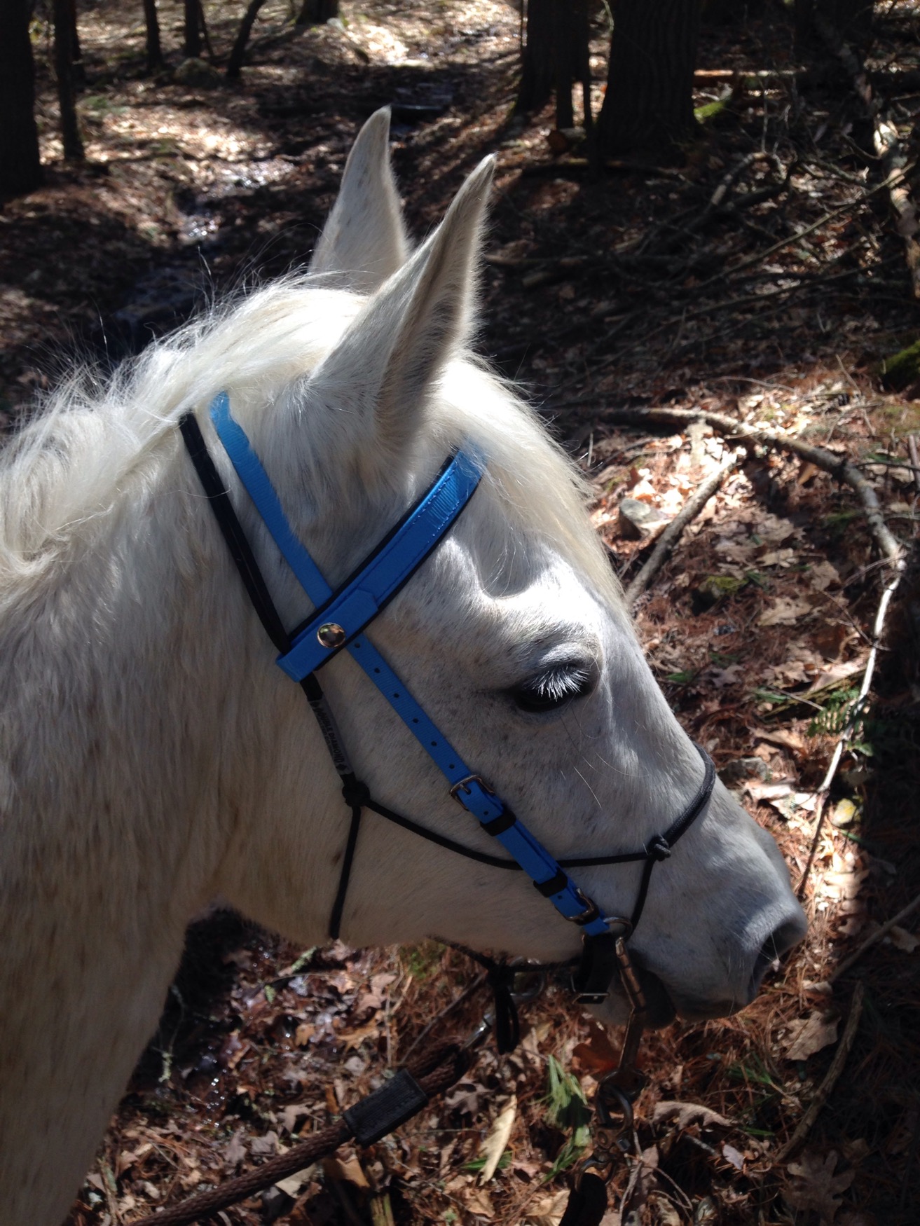 Today Faygo and I went for a quick ride. We were excited to try out her new Zilco snap on bridle. It’s a beautiful bright blue and looks great on her! The headstall and bit connect with a snap to her rope halter (or a biothane halter) and make it easy to remove the bit on the trail for a rest/snack or at a vet check. We found a great deal on the bridle and I’ll probably get one for Khaleesi too.