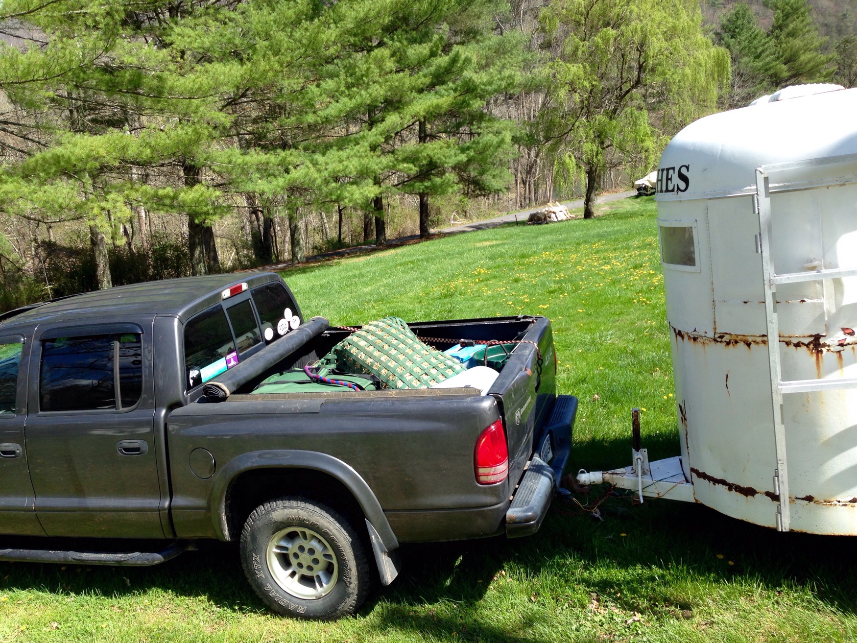 So after getting everyone turned back out as the bad weather blew in I started working on my checklist. After a quick lunch and checking in online to my vet records Faygo’s new coggins had come (Hallelujah! the vet said it should be fine, but I worried that hell and high water would never stop us from entering, but some glitch in the coggins test would). That’s great news- then step one moving forward was get horse trailer and truck power washed. The back of the truck was still filled with rocks (don’t ask- they’re for a project) and after unloading the rocks I couldn’t seem to get the angle quite right to hook up the trailer. We finally get on the road, get washed up, get our farm store supplies, have the tires checked all around and just as I’m about to make a bank deposit my cell phone rings.
